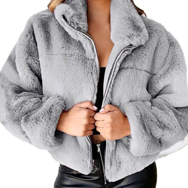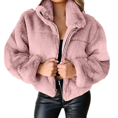 Introducing our Women's Casual Plush Cardigan, a must-have addition to your wardrobe. This short-style jacket features a front placket, long sleeves, and a stand collar for a chic and fashionable look. Made from soft and comfortable cotton blended material, it is perfect for spring, autumn, and winter seasons. The solid color appearance adds simplicity and elegance to any outfit. Pair this versatile jacket with various tops and pants to create stylish and casual looks that highlight your femininity. Whether you're running errands, working out, or simply going about your daily activities, this jacket is suitable for any occasion. Stay cozy and stylish all year round with our Women's Casual Plush Cardigan.