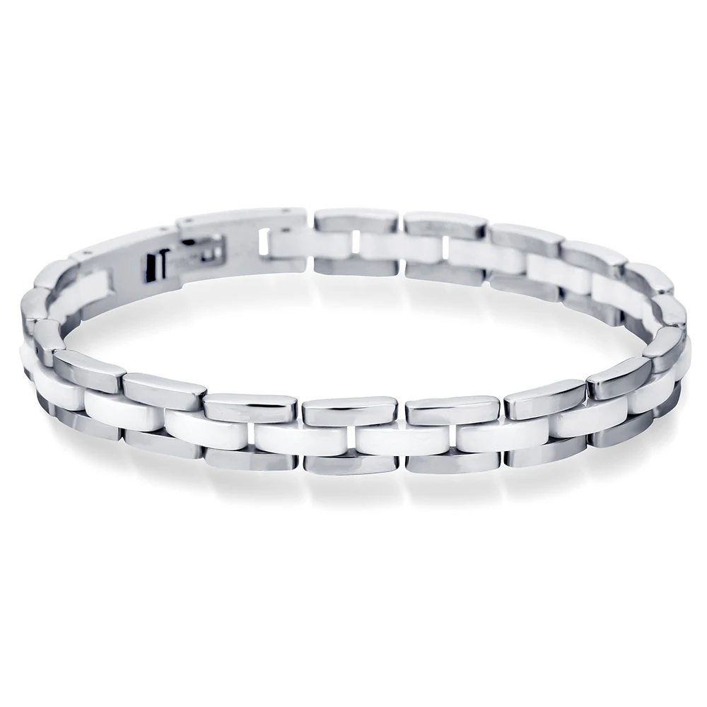20Cm White Ceramic Bracelet Bangle Stainless Steel Chain Link Bracelet Women and Men Jewelry — Timeless, durable elegance