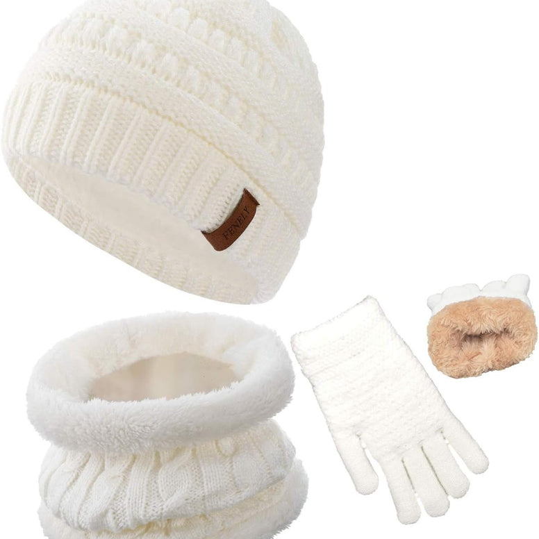 3Pcs Kids Winter Beanie Hat Scarf Gloves Set for 2-6-10-14 Years Old Boys Girls, Knit Thick Warm Fleece Lined Thermal Sets — All-in-one cold-weather protection