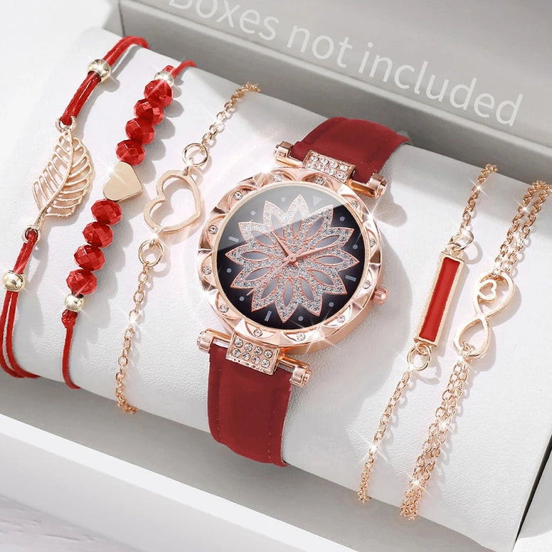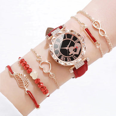 6PCS/Set Women's Watch Fashion Roma Heart Dial Leather Band Quartz Watches Leaf Bracelets Set(Without Box) - Simply Just Deals LLC6PCS/Set Women's Watch Fashion Roma Heart Dial Leather Band Quartz Watches Leaf Bracelets Set(Without Box)14200000080DSetWithoutBoxD Set Without Box6PCS/Set Women's Watch Fashion Roma Heart Dial Leather Band Quartz Watches Leaf Bracelets Set(Without Box)