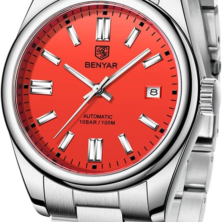 BENYAR Men's Waterproof Sports Mechanical Watch with Stainless Steel Strap (Steel Red) — rugged precision for active wear.