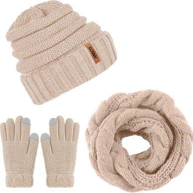 Cozy Winter Knitted Scarf, Beanie Hat & Gloves Set for Men & Women - Soft, Stretchy & Stylish! Stay warm with effortless style.