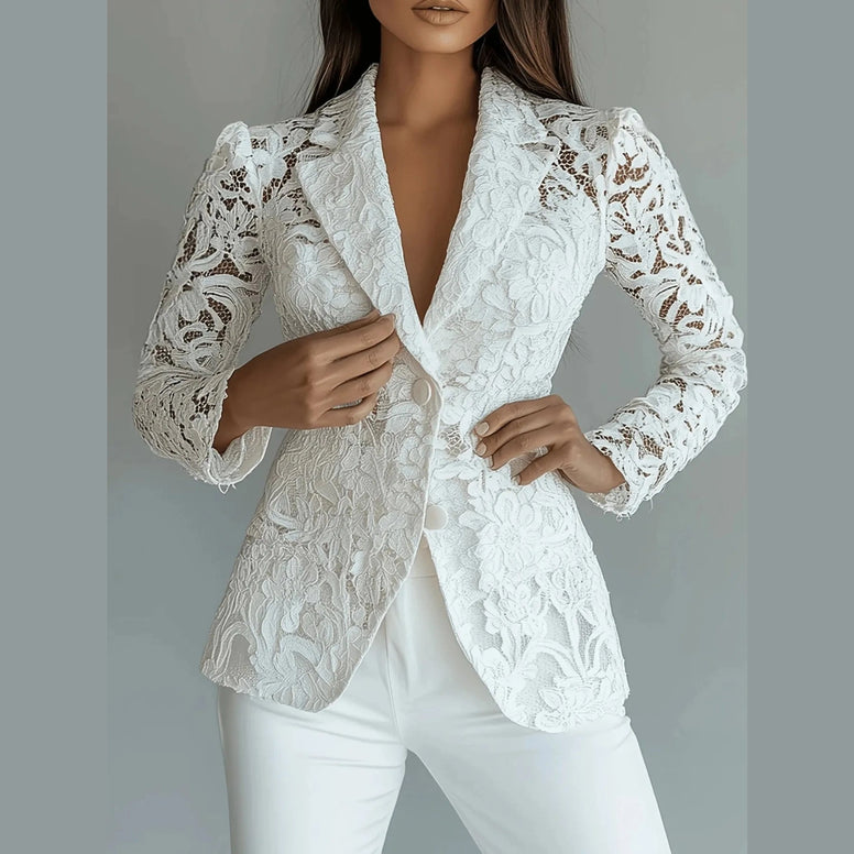 Floral Pattern Lace Single - Breasted Blazer - Simply Just Deals LLCFloral Pattern Lace Single - Breasted Blazer100100141538636WhiteS23bcb609bd884a0fa4dae5afd0e84cec - Max - Origin