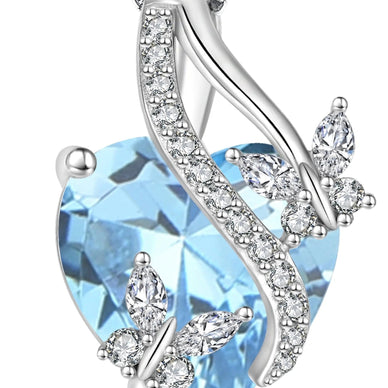 VESITIM Infinite Heart Pendant Silver Butterfly Necklace for Women Jewelry Gift with Birthstone March Created Aquamarine — a radiant fusion of love and freedom.