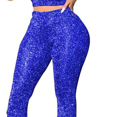 Jumpsuits for Women Casual 2 Piece Sets Sexy Crop Tops Stacked Pants Sweat Suits Blue M — Effortless, head-turning comfort in a vivid blue two-piece jumpsuit.