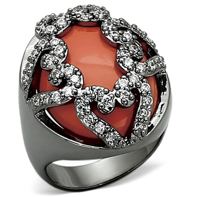 LOA886 is a Ruthenium Brass Ring designed for fearless style. It showcases a vivid orange synthetic cat eye centerpiece set atop a ruthenium-plated brass band, delivering a striking focal point with modern elegance. The centerpiece measures 23.17 mm, and the ring weighs 14 g for a substantial, high-quality feel you can wear with confidence.