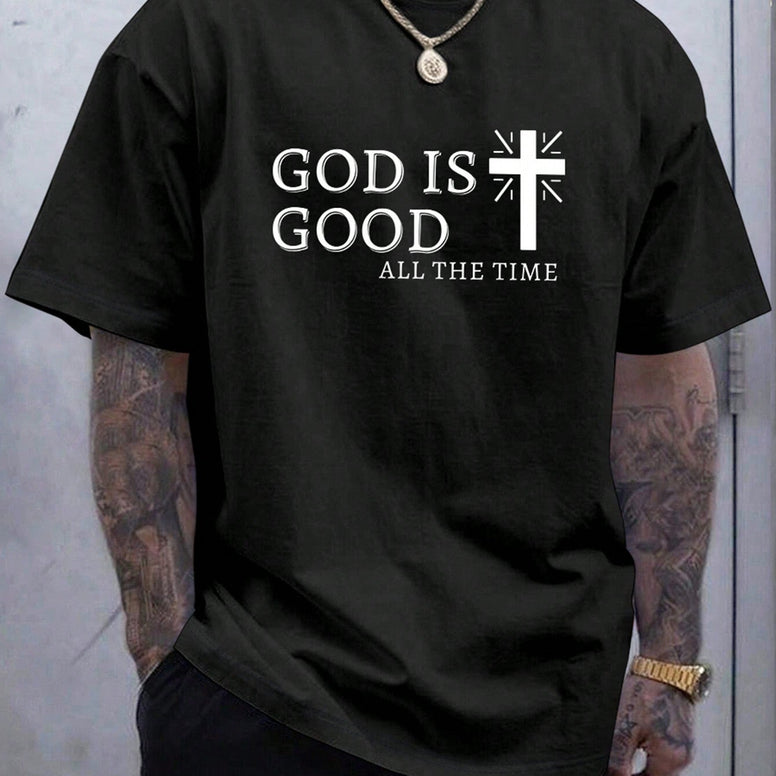 Manfinity LEGND Men Casual Summer Cross & Slogan Graphic Printed Short Sleeve T-Shirt, for Friends — bold, breathable everyday style.
