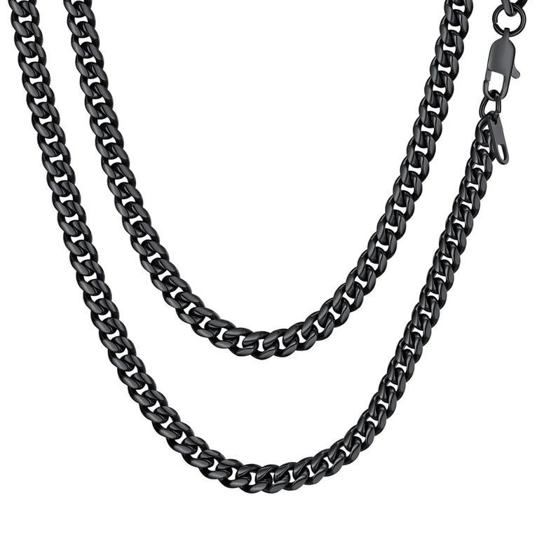 6mm wide Cuban link; 24 inches long; 316L stainless steel with black plating