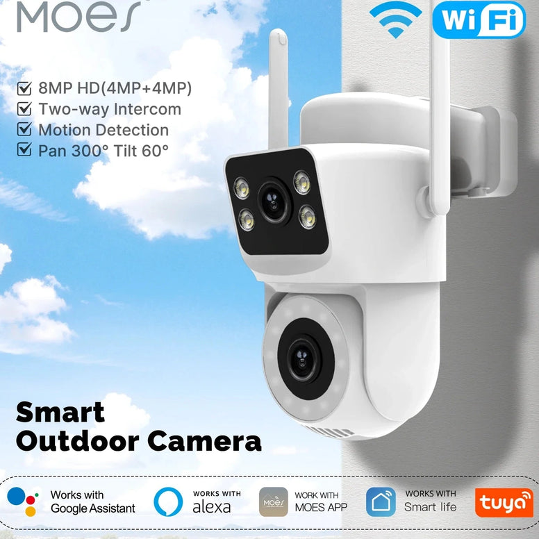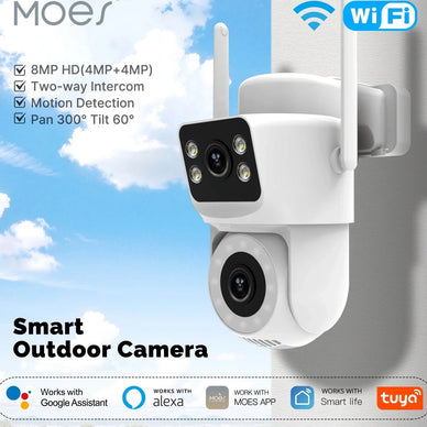 Moes Tuya Smart WiFi Outdoor Security Camera 8MP Dual Screen 2.4G/5G IP65 Waterproof Motion Detection Auto Track Two-Way Audio
