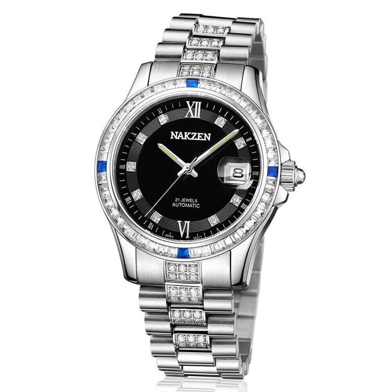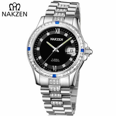 Experience precision and craftsmanship with the NAKZEN Men's Automatic Mechanical Watch, featuring the reputable Japan NH35 movement known for its reliability and accuracy. This elegant timepiece combines a stainless steel bracelet with diamond accents, delivering both durability and refined style. The automatic mechanism eliminates the need for batteries, ensuring continuous and smooth operation with every wear. Ideal for those who appreciate expert engineering and sophisticated design in a wristwatch.