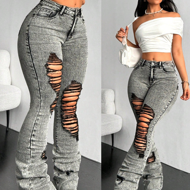 SHEIN ICON Women Minimalist Daily Ripped Denim Jeans — Effortless everyday style in blue denim with a barely ripped, perfectly tailored silhouette.