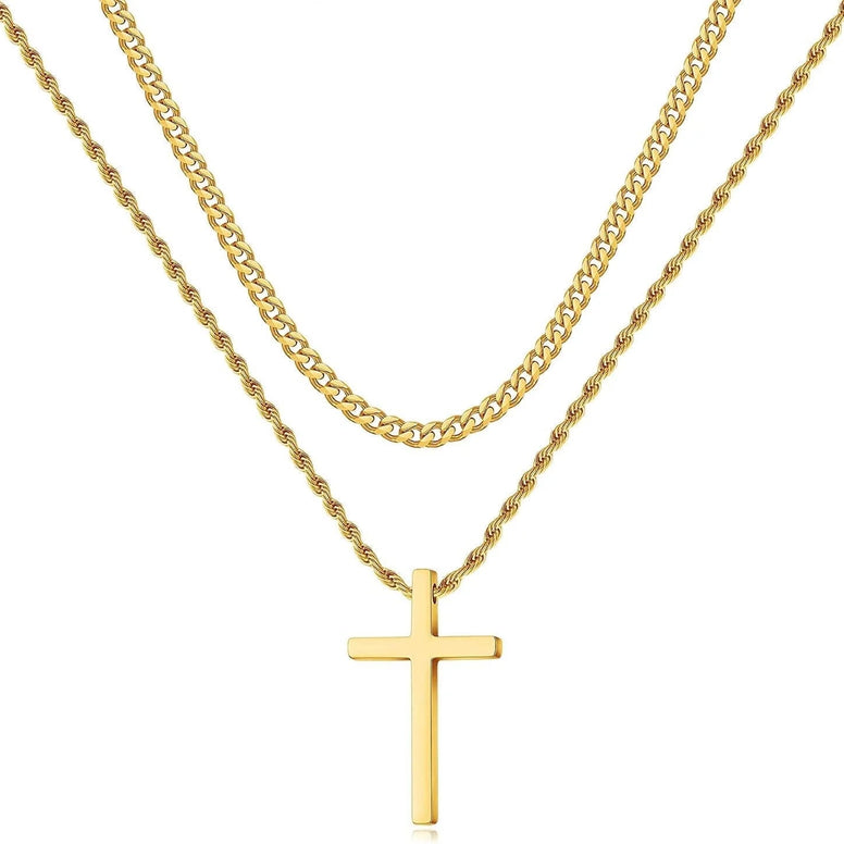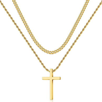 Stainless Steel Cross Necklaces for Men Layered Cuban Link Chain Rope Chain Mens Cross Necklaces Black Silver Gold Cross Pendant Necklace for Men Women 16-26 Inches — Layered shine that elevates every outfit.